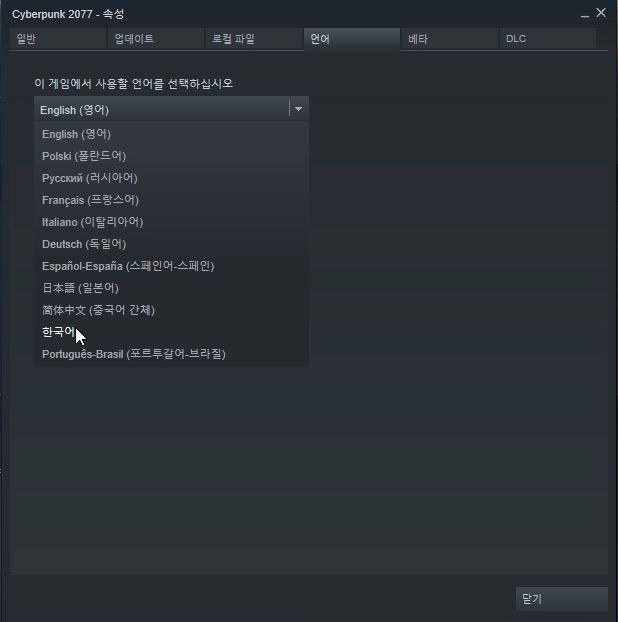 사펑2077도 한국어 자막은 나오는데 더빙이 안 나와,