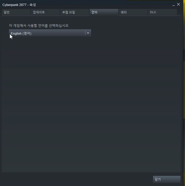 해결방법은 스팀의 라이브러리에서 사펑2077 더빙 팩을 다운로드하면 된다!!