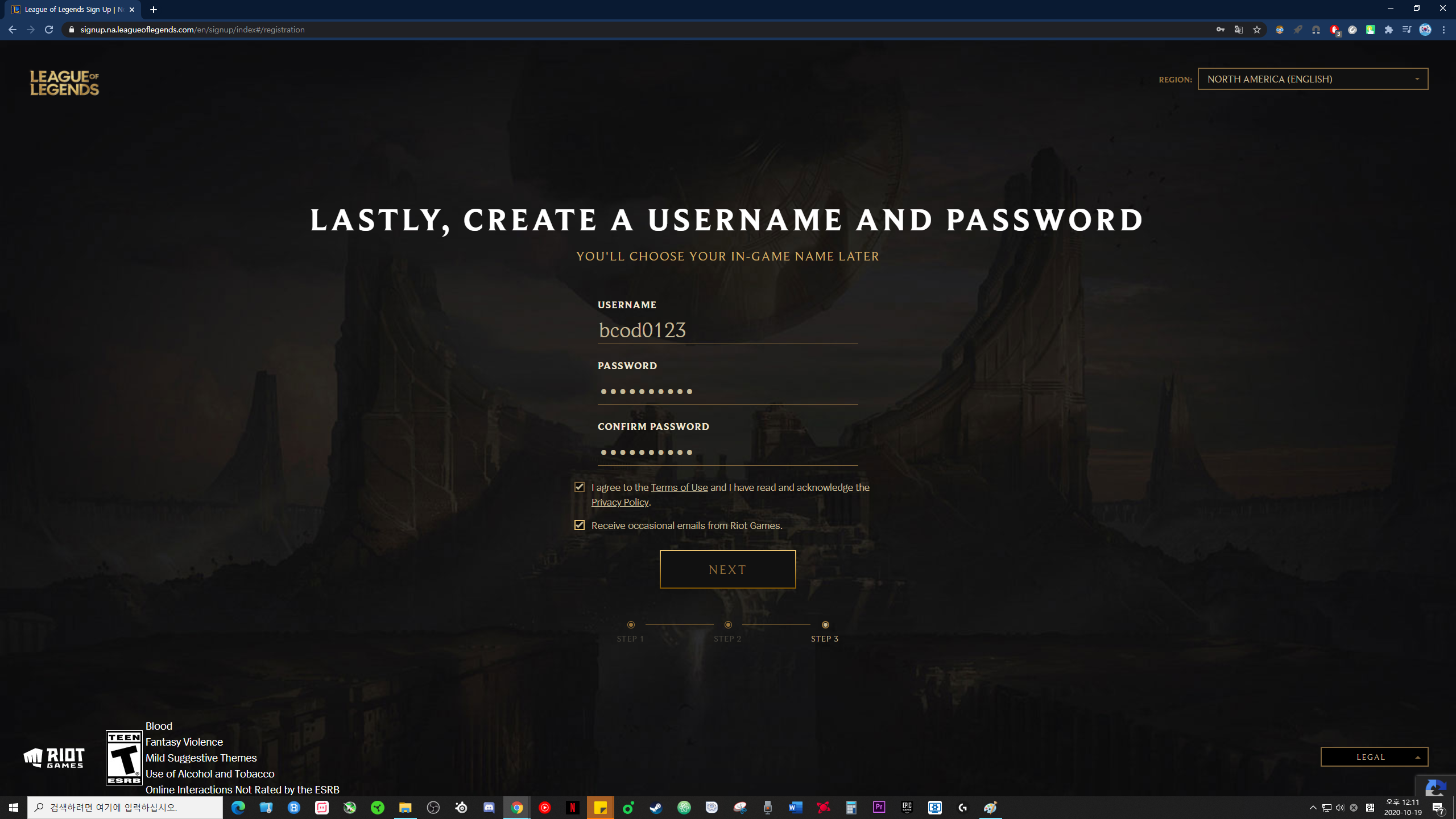 셋째. 북미 계정 이용하여 PBE 서버 계정 생성